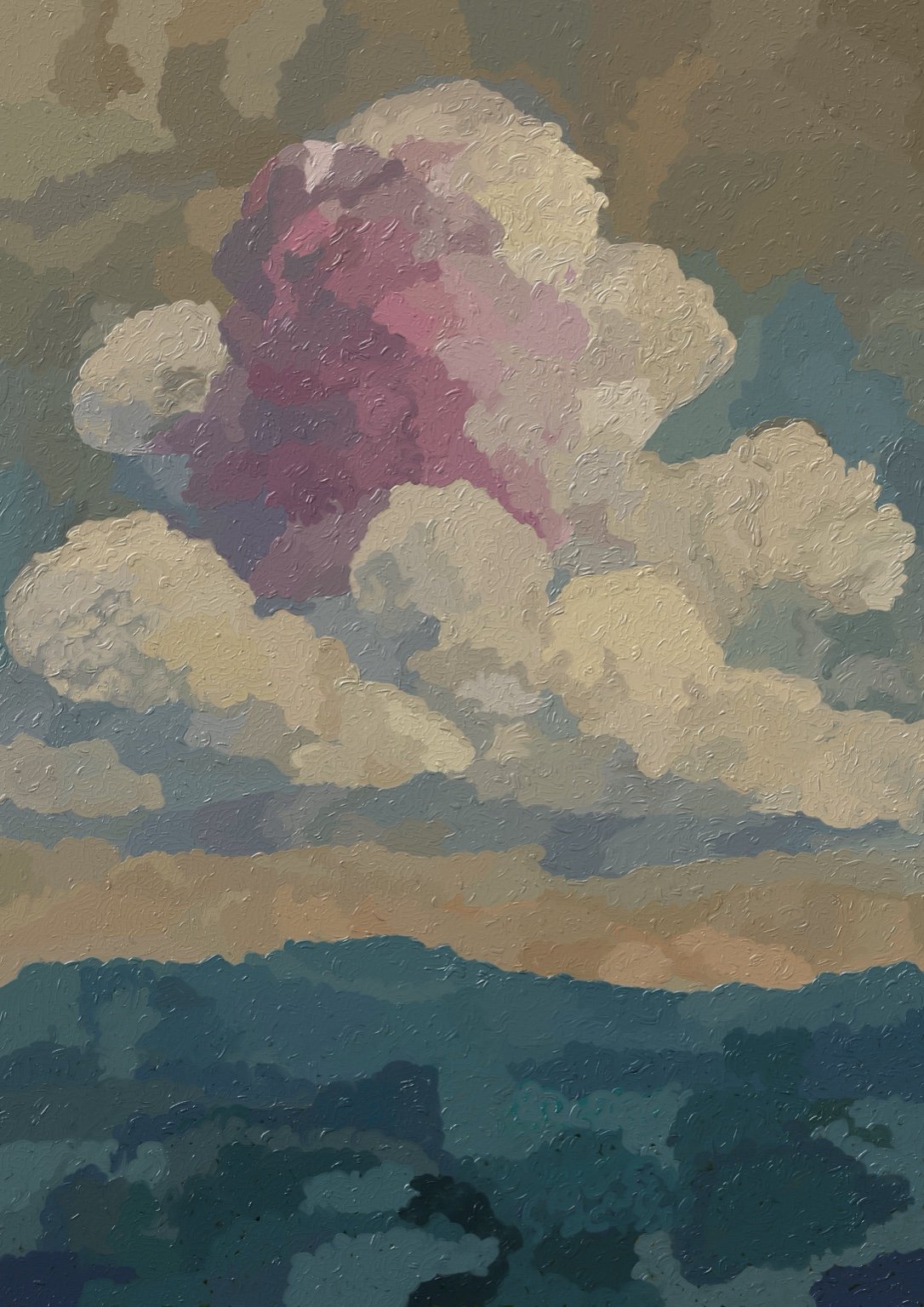 보랏빛과 황금빛이 뒤섞인 구름 덩어리가